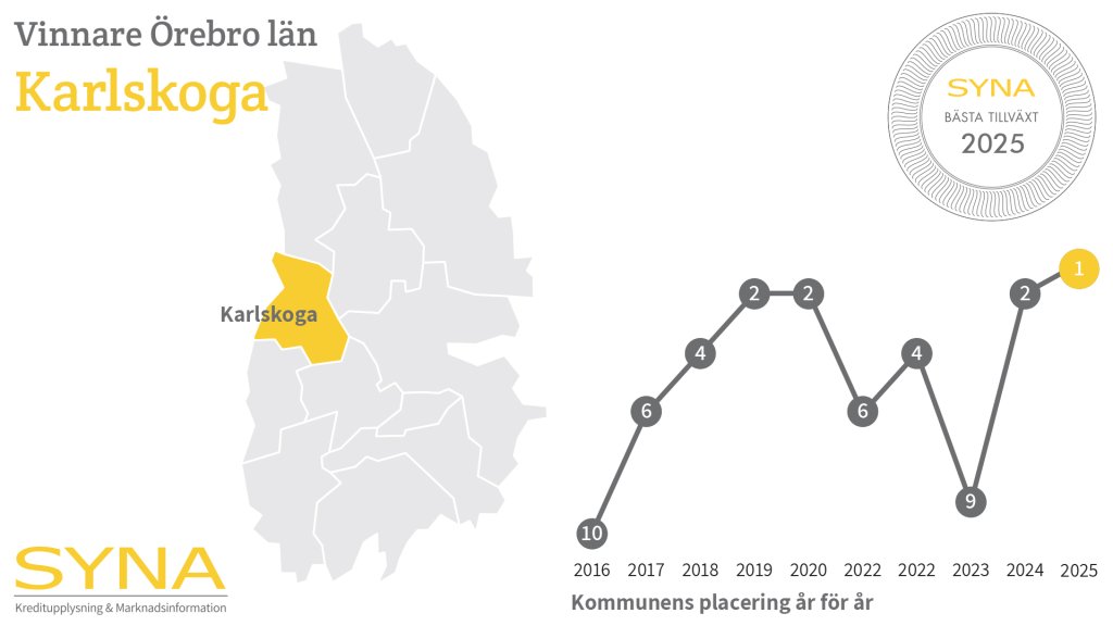 Grattis Karlskoga kommun till förstaplatsen i Bästa Tillväxt 2025 i Örebro län!