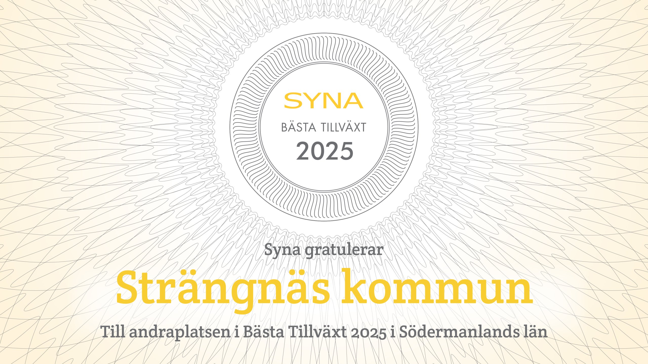 Varje år delar Syna ut priset Bästa Tillväxt till den kommun i varje län där företagen växer bäst. Syna granskar boksluten från alla svenska aktiebolag, och utmärkelsen går till den kommun som har störst andel företag som nyanställer, ökar sin omsättning och går med vinst.