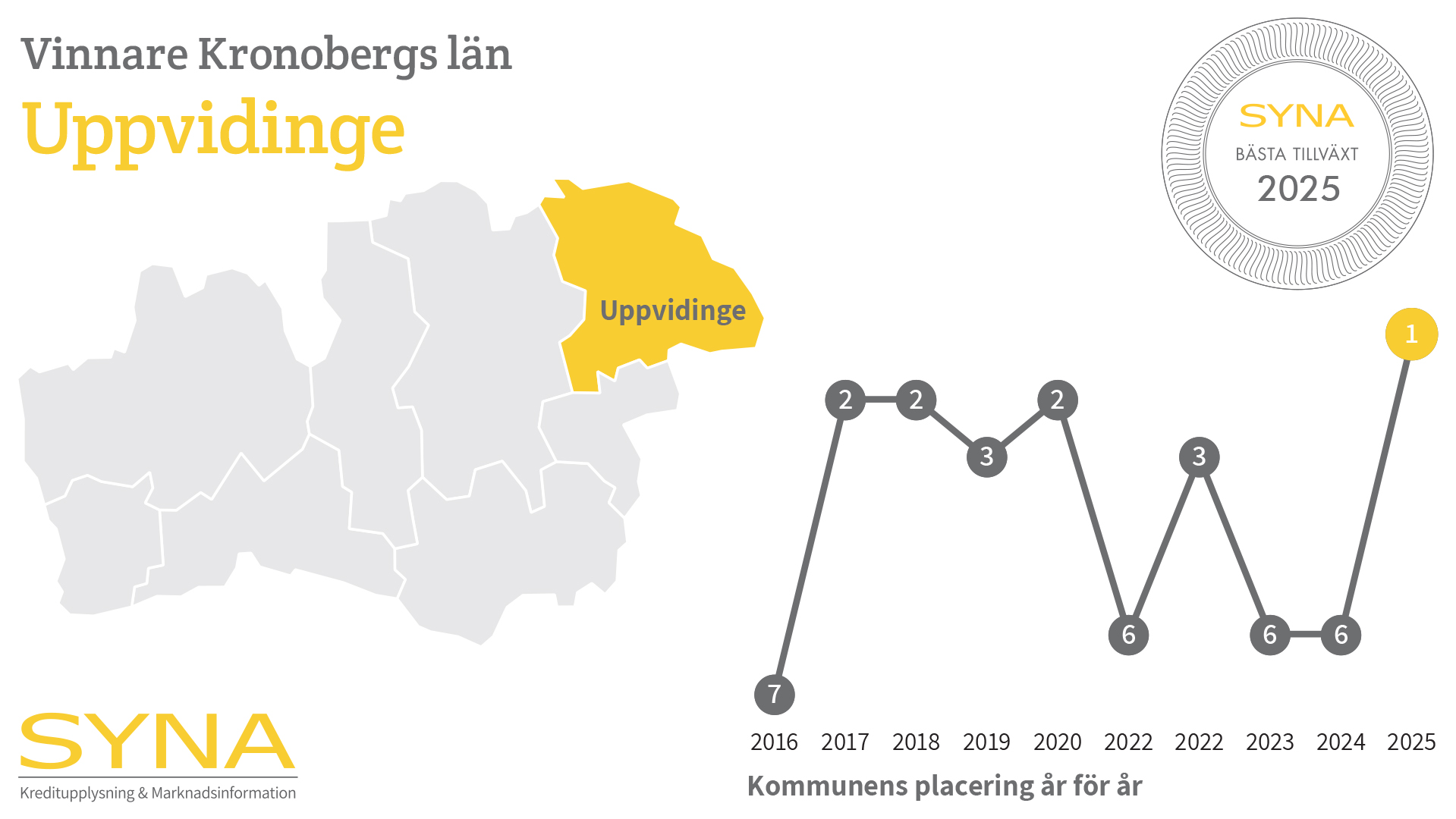 Grattis Uppvidinge kommun till förstaplatsen i Bästa Tillväxt 2025 i Kronobergs län!